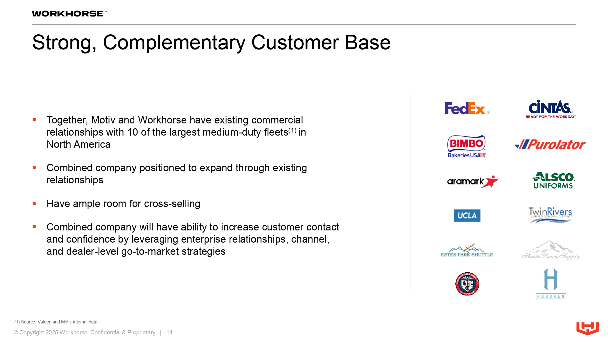 © Copyright 2025 Workhorse. Confidential & Proprietary | 1 + August 19, 2025 Workhorse and Motiv Joint Conference Call