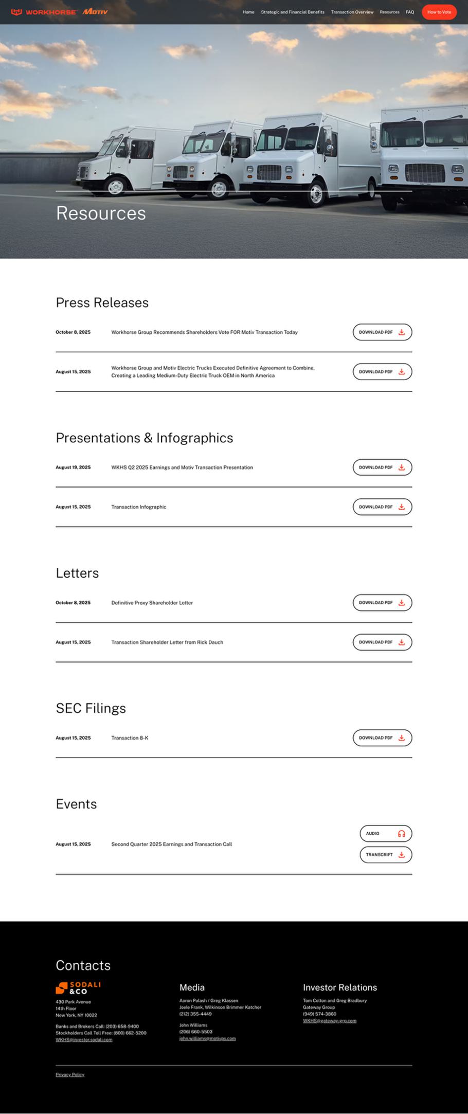 This Schedule 14A filing consists of communications from Workhorse Group Inc. (“Workhorse” or the “Company”), to the Company’s employees, customers, partners and analysts relating to the Agreement and Plan of Merger, dated August 15, 2025, by and among the Company, Motiv Power Systems, Inc., a Delaware corporation (“Motiv”), Omaha Intermediate 2, Inc., a Delaware corporation, Omaha Intermediate, Inc., a Delaware corporation, and Omaha Merger Subsidiary, Inc., a Delaware corporation (the “Merger Agreement”).